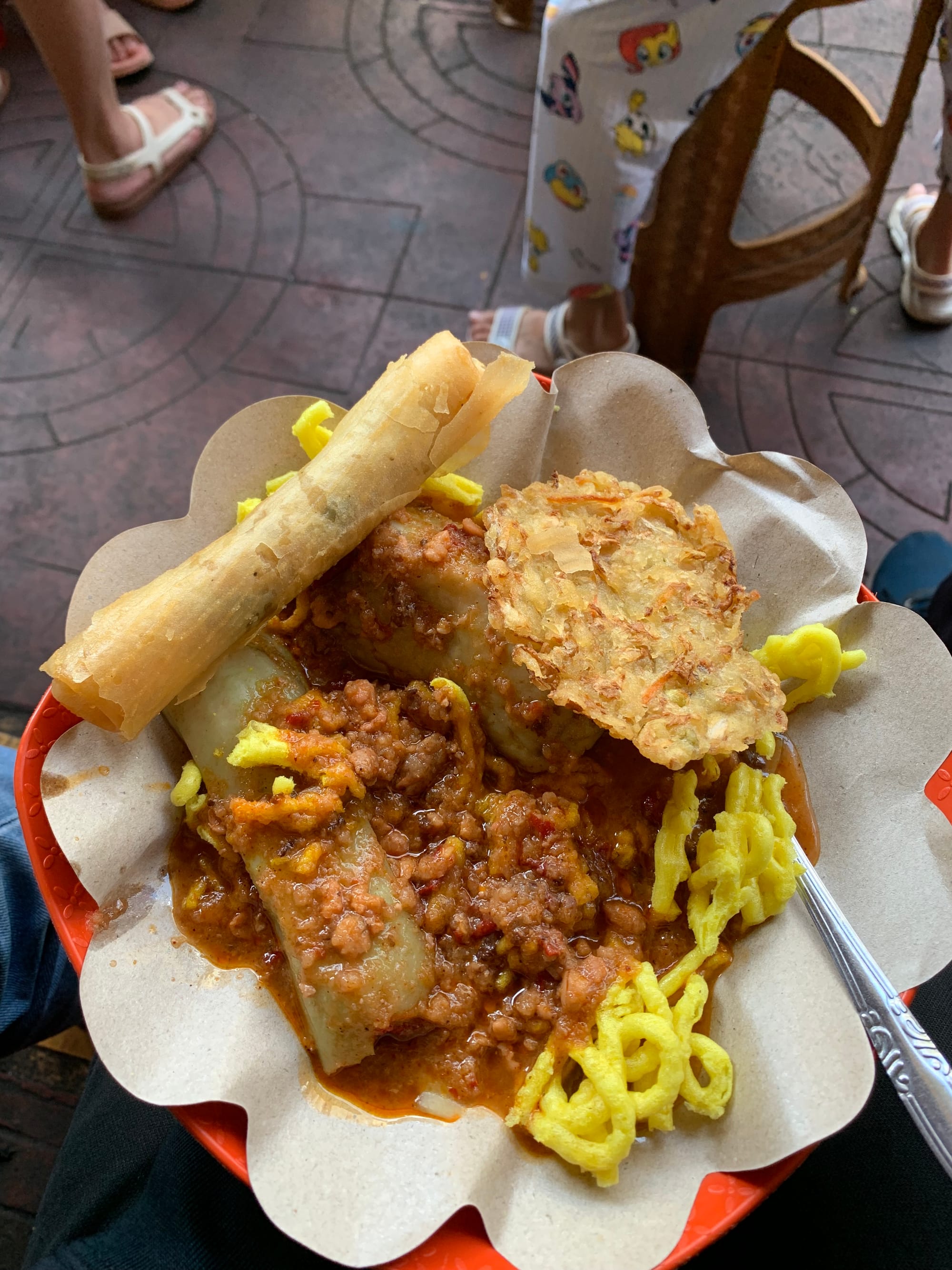 ini namanya Lontong Cibadak. Agak pedes, manis, dan agak asam. Gue beli pake lontong biasa 1 sama lontong ayam 1, risol 1, bakwan 1. Lontong ayamnya kayak isi combro, bukan ayam suwir kayak lemper. Gak kerasa ayamnya lah. Bakwan sama risolnya lumayan enak dan gak terlalu berminyak. Overall 7.5/10.